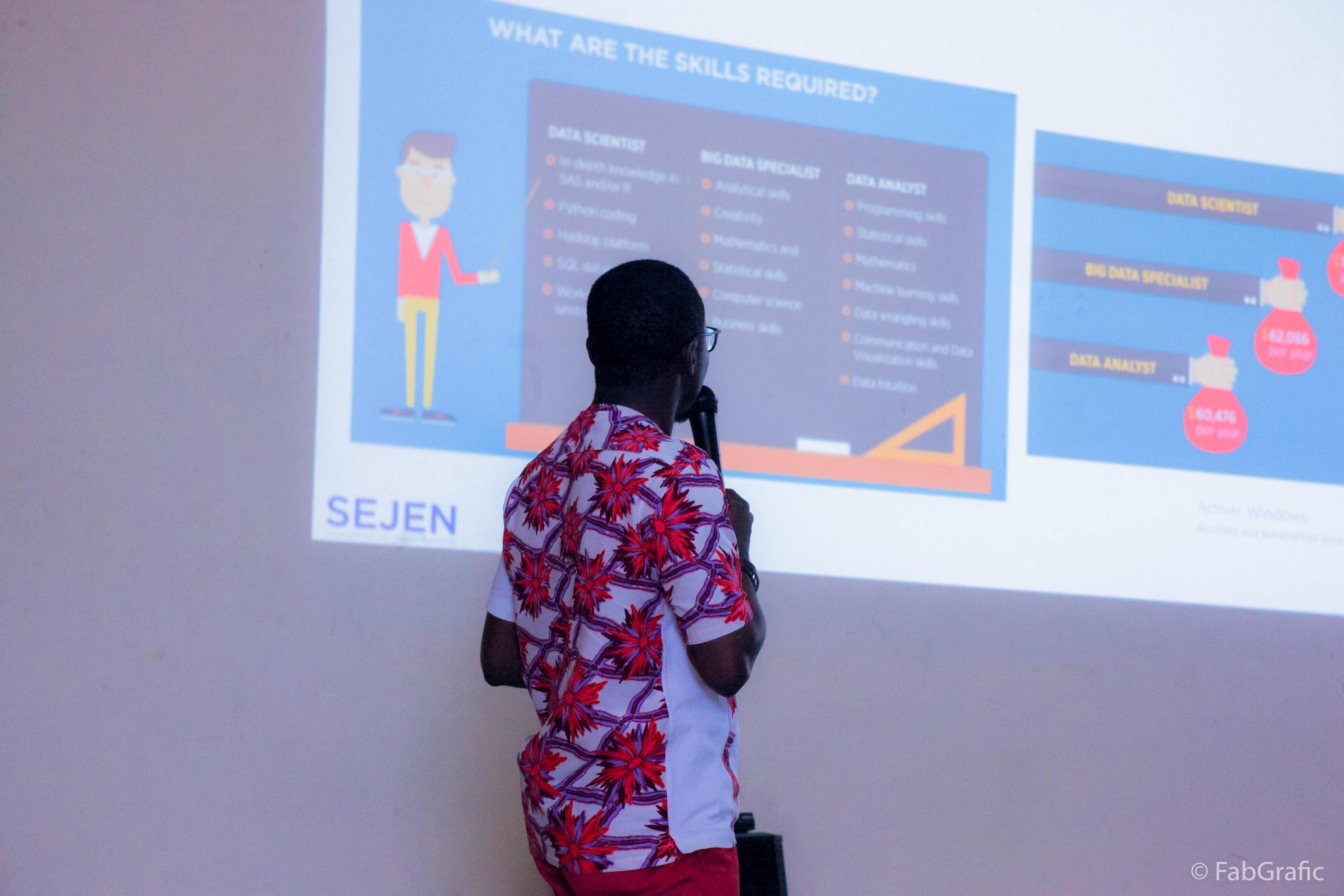 Devant plus de 50 étudiants, Telesphore KANGA, Project manager, spécialiste en conception et gestion de base de données chez SEJEN CI a au cours de sa communication sur « Vue générale de la Data Science » a présenté les démembrements de cette science et démontré sa place de plus en plus grandissante dans notre société.